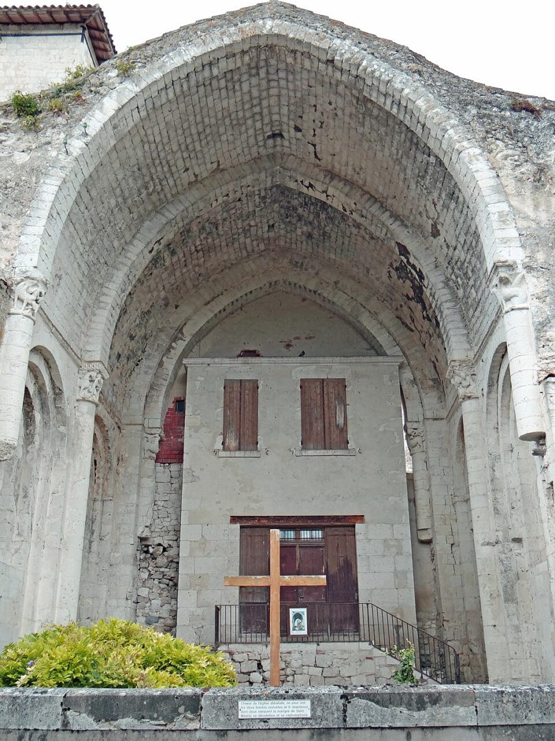 En partie détruite, l’église conserve encore douze chapiteaux sculptés dans le premier quart du XIIe siècle et dont le style témoigne de l’art de l’abbaye de Moissac située à seulement 25 km de distance.