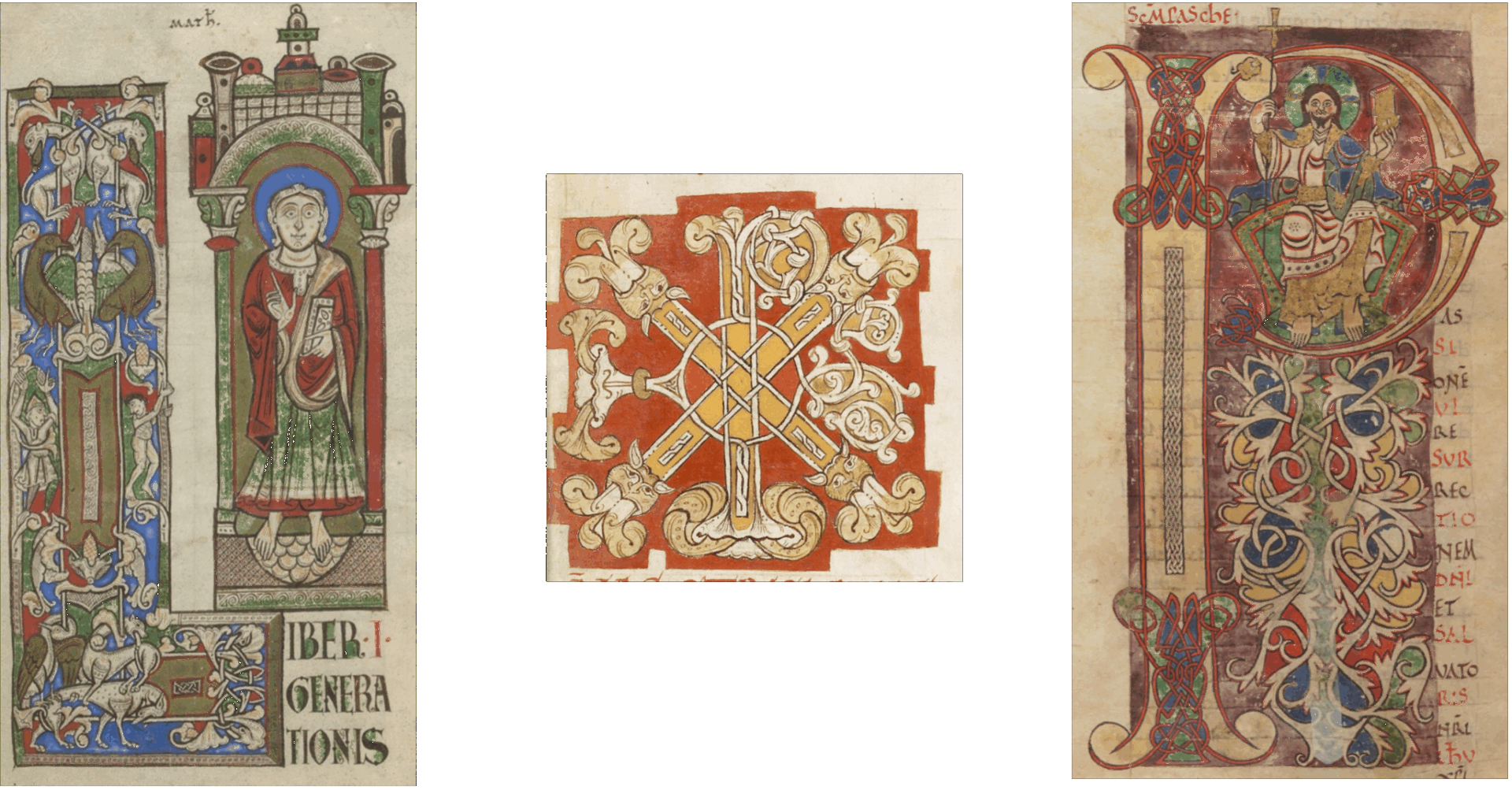 - Des initiales décoratives ornées de motifs zoomorphes ou aniconiques (dépourvue de représentations figurées)