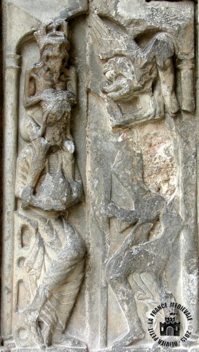 lusieurs scènes évoquent enfin les supplices de l’enfer : deux personnages (un roi et un évêque) probablement coupables de simonie et de corruption sont par exemple attaqués par deux diables assis sur leur épaule. Ici, les moines clunisiens de Moissac mettent en garde le passant du châtiment réservé à celui qui faute…