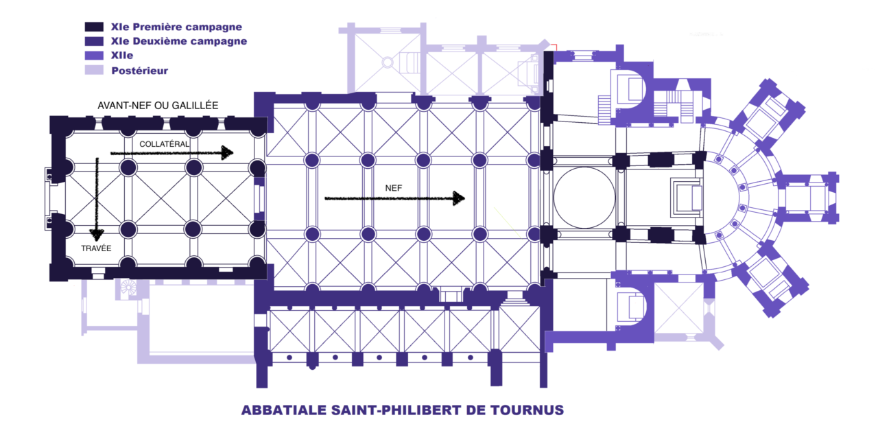Une nouvelle chapelle, dédiée à la Vierge Marie, est par exemple aménagée à l’angle du cloître et une avant-nef à deux étages, nommée galilée (en référence à la rencontre du Christ et des apôtres en Galilée) est construite entre le dernier quart du XIe et le début du XIIe siècle.