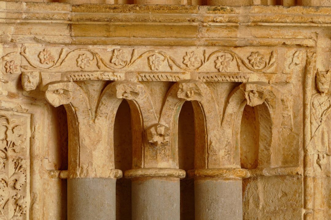 En face, au-dessus de la porte d’entrée de l’église, les archanges Gabriel et Michel (5) sont surmontés de l’agneau de Dieu inscrit dans un oculuset muni de l’étendard de la croix (6). Leur présence pourrait faire écho à la chapelle Saint-Michel, située à l’étage supérieur.